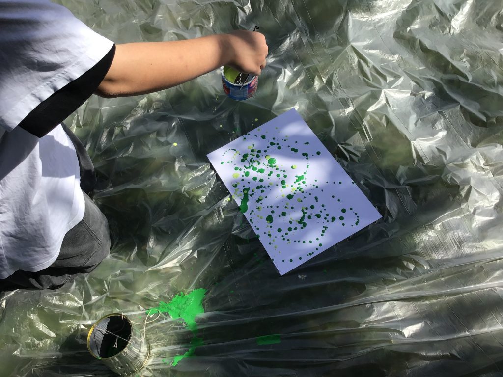 Die Gruppe Farbexplosion benutzt die „Dripping Methode“. Das bedeutet, dass sie Löcher in die Dosen hämmern und diese mit Farbe füllen, um dann auf Leinwände eine Linien-Optik zu erschaffen. Jackson Pollok lebte 1949-1970 und hat diese Technik erschaffen (Dripping Methode). Er war ein sehr berühmter Künstler. Er war weltweit bekannt in der amerikanischen Kunst. Die Dripping Methode ist bei diesem Projekt vollendet. Die unterschiedlichen Ergebnisse geben ein Gefühl von Spaß, da diese sehr farbenfroh sind.