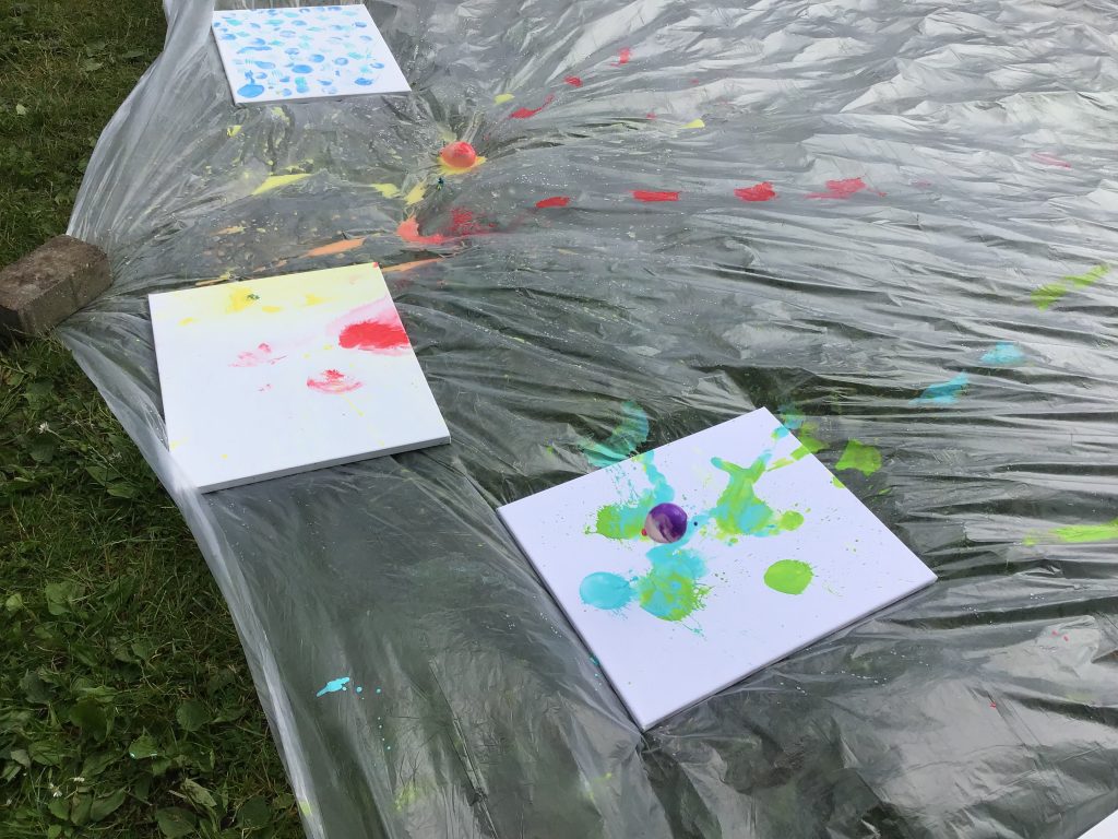 Heute ( Mittwoch ) hat das Projekt Farbexplosion Wasserbomben auf Leinwänte geworfen voher haben sie die Wasserbomben in die verschiedensten Farben getaucht.Durch diese Technik sind Kreise, Liniden un auch Spritzer endstanden und haben auch die weise Leinwand Farbe und Frölichkeit gebracht durch diese Emotionen sind fabelhafte Kunstwärke endstanden.Die Schüler hatten viel Spaß dabei den sie konnten alles auf der Leinwand rauslassen zum Beispiel Wut, Freude und Kreativität