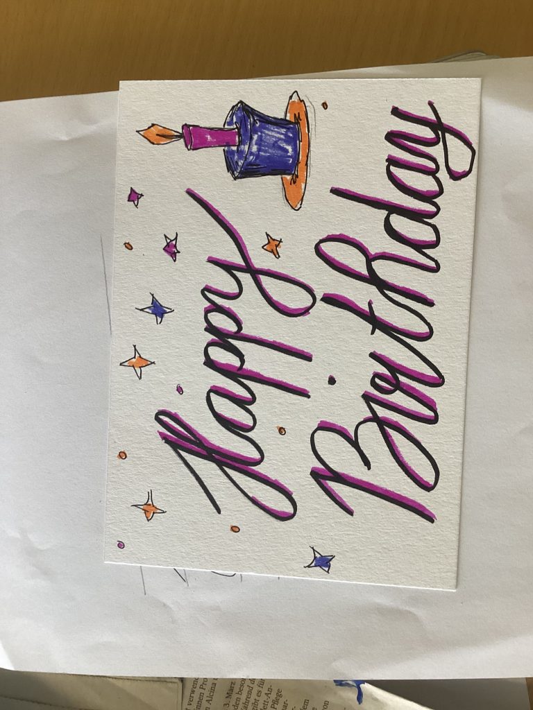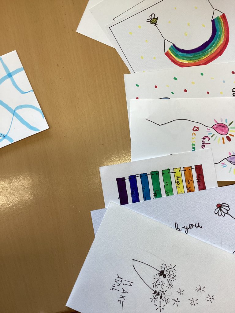 Am zweiten Tag der Projektwoche sind schon sehr viele Grußkarten fertig gestellt. Hier sind zwei sehr schöne Geburtstagskarten
