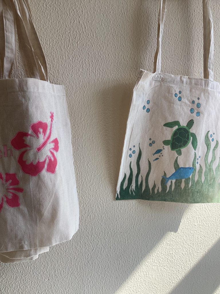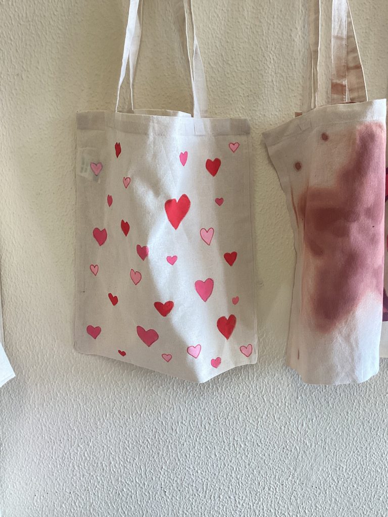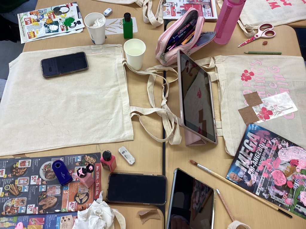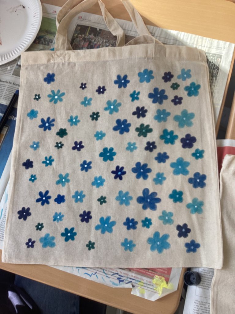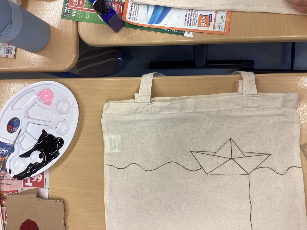 Am zweiten Tag waren die ersten Jutebeutel bereits fertig zum Tragen. Die Schüler haben nun schon an neuen Motiven gearbeitet.