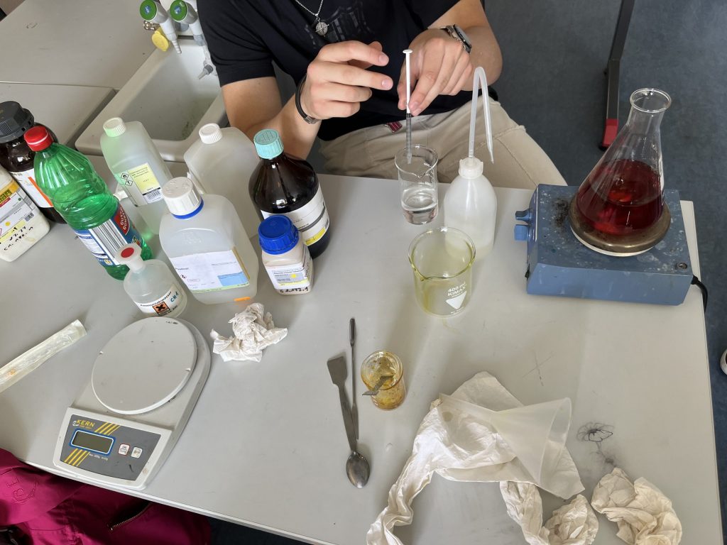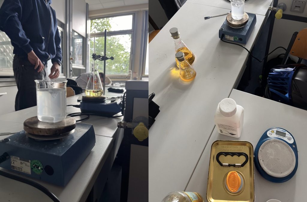 Besonders hervorzuheben ist die Gruppe, die an ihrem „Jugend forscht“-Projekt weiterforschte. Diese Schüler arbeiten daran, Biodiesel herzustellen und experimentierten dabei mit verschiedenen Alkoholen, um die Effizienz und Umweltverträglichkeit des Kraftstoffs zu untersuchen.