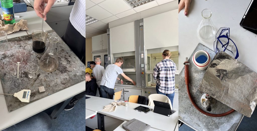 Bereits am Dienstagmorgen hatten sich die Schüler/-innen hier in Gruppen eingeteilt mit der Aufgabe, ein Experiment zu wählen, es vorzubereiten und durchzuführen, sowie die Ergebnisse zu dokumentieren und präsentieren. Zur Auswahl standen zum Beispiel das Verkohlen von Zucker, Münzen versilbern und vergolden und viele weitere Experimente. Die Intention der Projekte ist es, Schülerinnen und Schüler für die Chemie zu begeistern und ihnen die Möglichkeit zu bieten, sich weiterzubilden.
