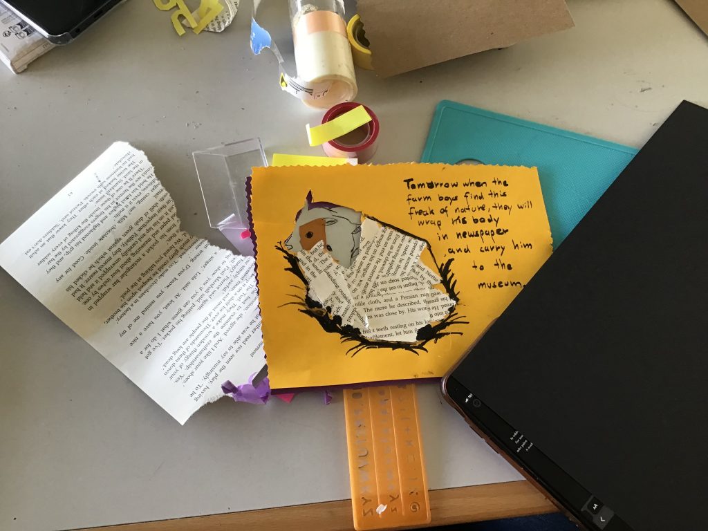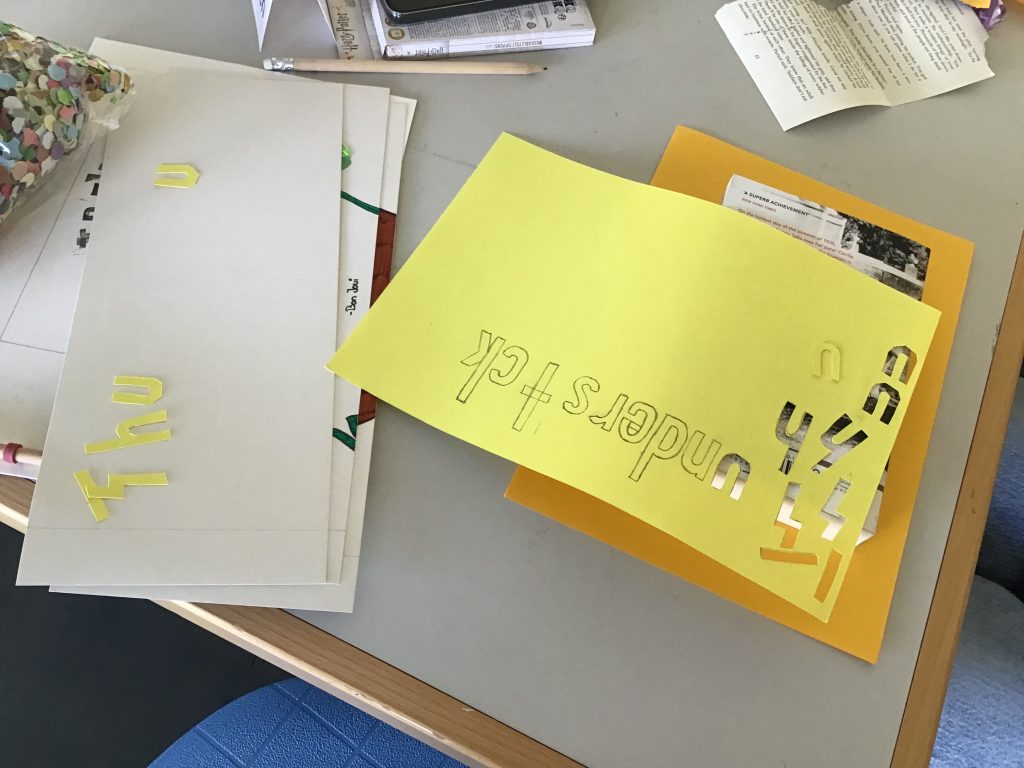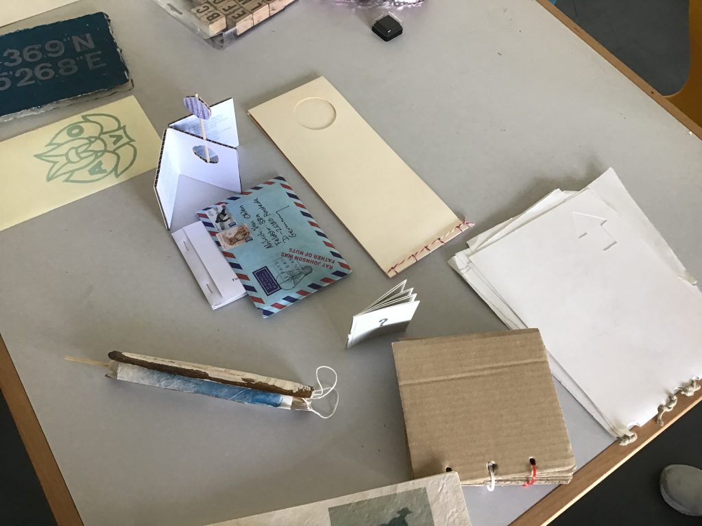 Am zweiten Tag haben sich die Gedanken mehrerer Künstlerbücher in angefangene Exemplare entwickelt. Auch diese sind wieder ganz unterschiedlich ausgefallen: Manche sind farbenfroh oder mit verschiedenen großen Buchstaben oder sie sind in unterschiedlichen Schriften geschrieben. Dabei konnten sie ihrer Kreativität freien Lauf lassen und hatten sehr viel Spaß und sie haben die Zeit genossen.