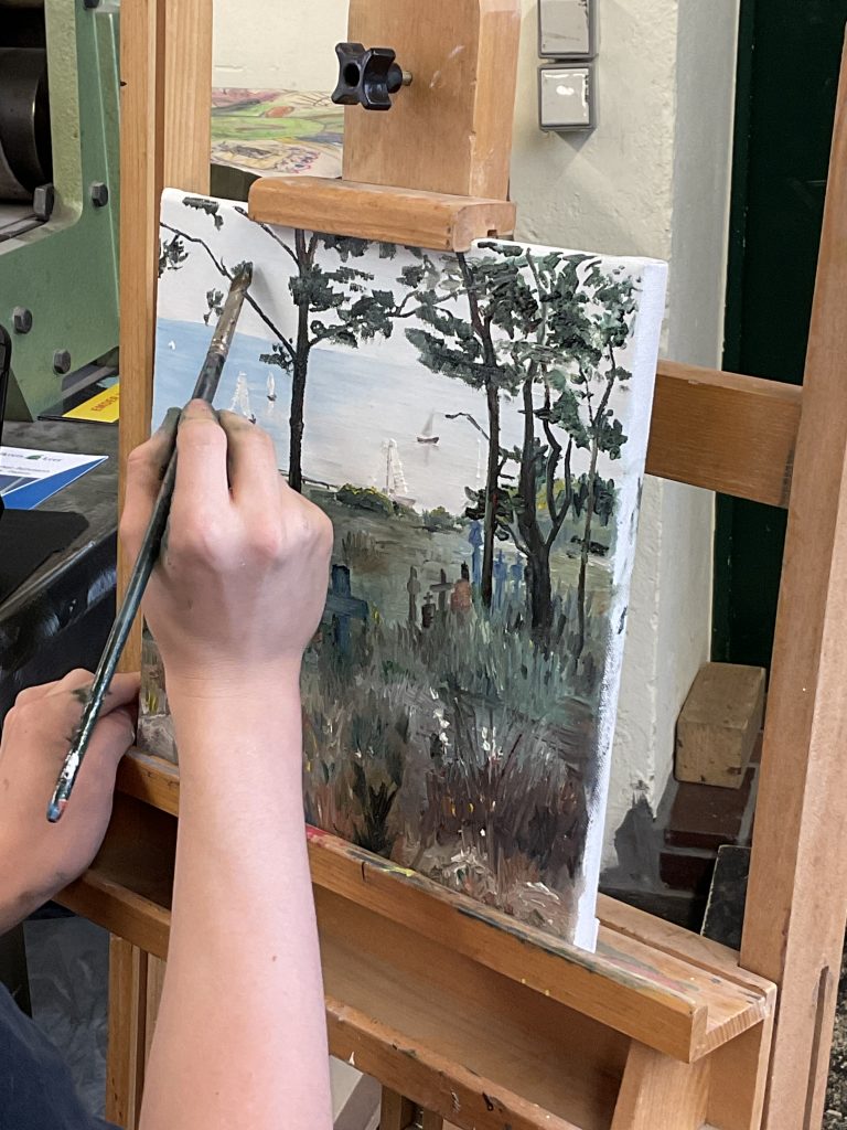 Schon mal im Kunsthaus Leer an deinem eigenen Bild gearbeitet? Dies konnten die SchülerInnen des Projektes Landschaftsmalerei in der Projektwoche machen. Sie haben sich am Dienstag sowie am Mittwoch in der Kunstschule getroffen und konnten dort ihrer kreativen Ader freien Lauf lassen.